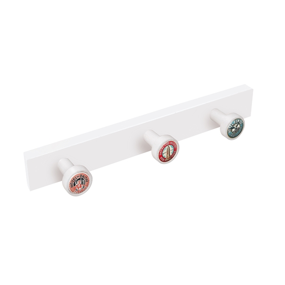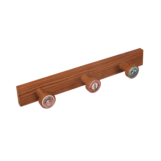 Perchas de pared fabricadas en madera natural tintada y envejecida con diseños retro y vintage. Este modelo en concreto es el MOD 9091 percha pared pomos lacada traveller vintage retro