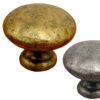 Boutons en laiton vieilli et argenté pour meubles rustiques et tiroirs d’époque. Ils sont très attrayants pour les maisons avec une atmosphère classique. Ce modèle particulier est le MOD 264 bouton de meuble bronze